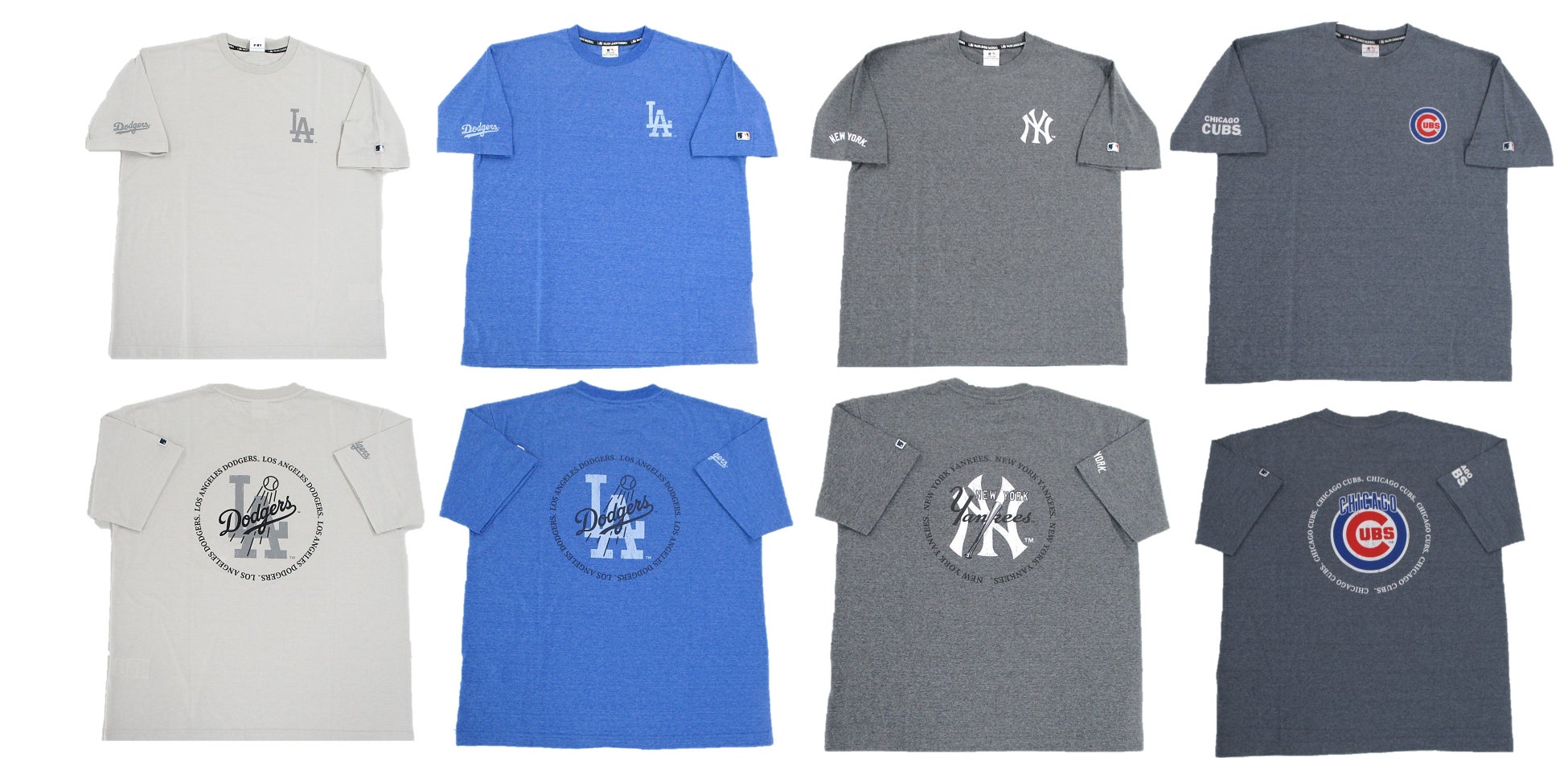 MLB球団ロゴをフロントとバックに使用した着こなしやすい商品です。「ニューヨークヤンキース」「ロサンゼルスドジャース」「シカゴカブス」「サンディエゴパドレス」の4チーム展開です。