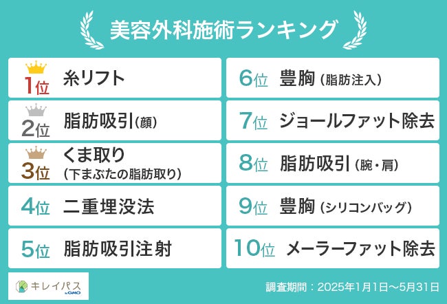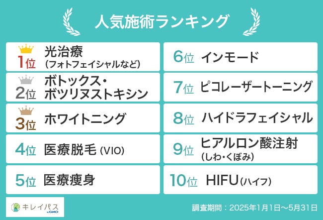美容医療検索・予約サービス「キレイパス byGMO」が「2025年上半期 美容医療人気ランキング」を発表【GMOビューティー】