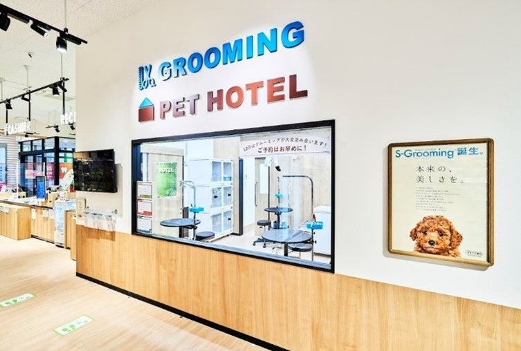 これまでペテモ青葉台店をご愛顧いただきましたお客さまに感謝申し上げますとともに、今後は従来以上に専門性の高い新サービスを充実いたします。具体的には、グルーミングサロンと動物病院が連携していることによる高齢・持病のあるペットの受入れを拡大する「メディカルケアグルーミング」や、ペットホテル利用中の健康診断「わんにゃんドック」サービスのほか、猫を対象としたグルーミングサービスを新たに開始します。また、より一層の「安全・安心」のもとお客さまにご利用をいただけるよう、サロンと動物病院にはガラスを用いた設備を多く導入し、サロンでのお預かり中のペットの様子が外からご覧いただくことや、処置室から常に入院室を見ることが可能となっています。
