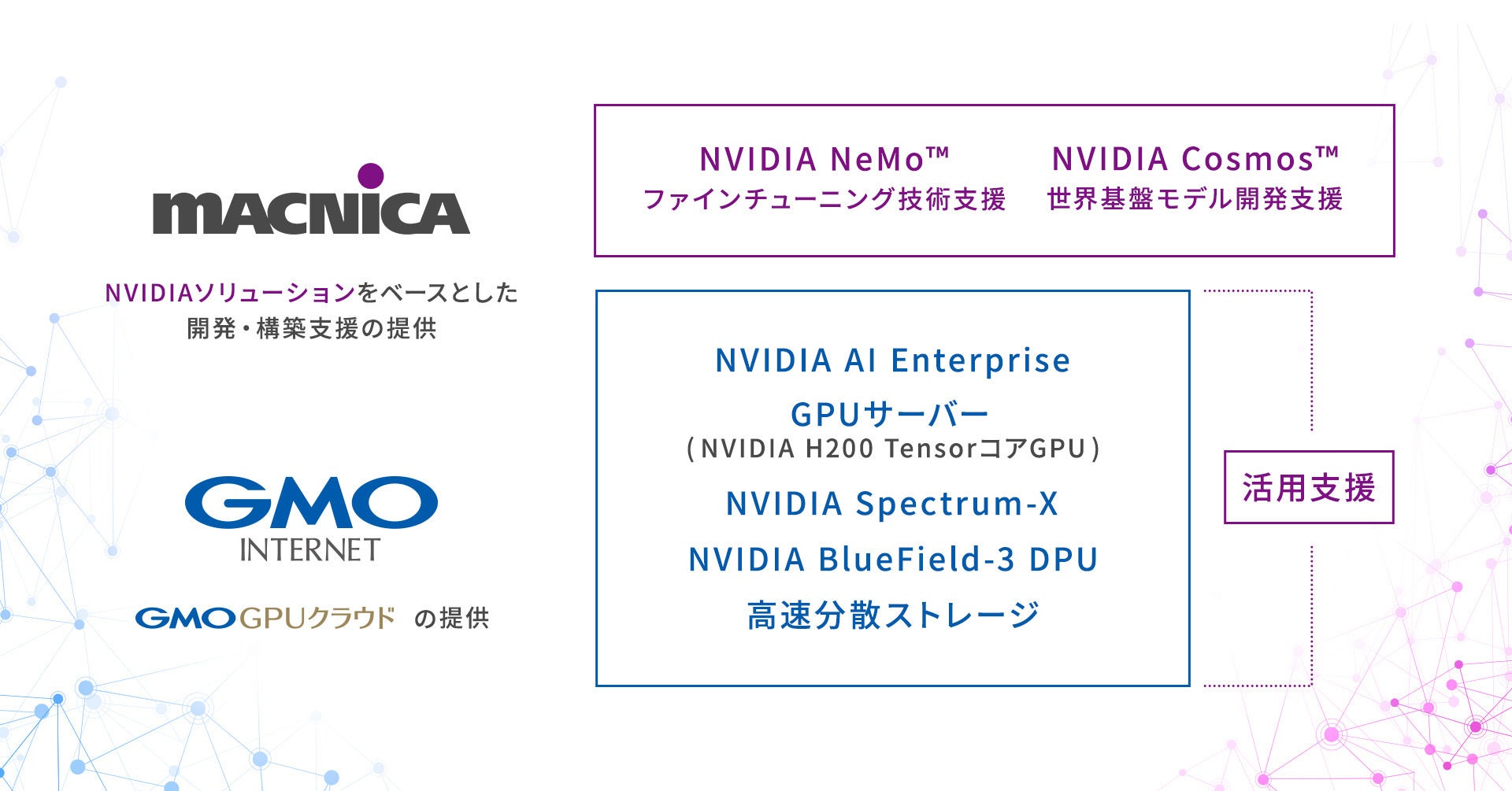 GMOインターネットとマクニカは、企業の生成AI開発や機械学習向けに国内最高水準(※1)のGPUクラウドサービス「GMO GPUクラウド」を計算基盤として提供します。