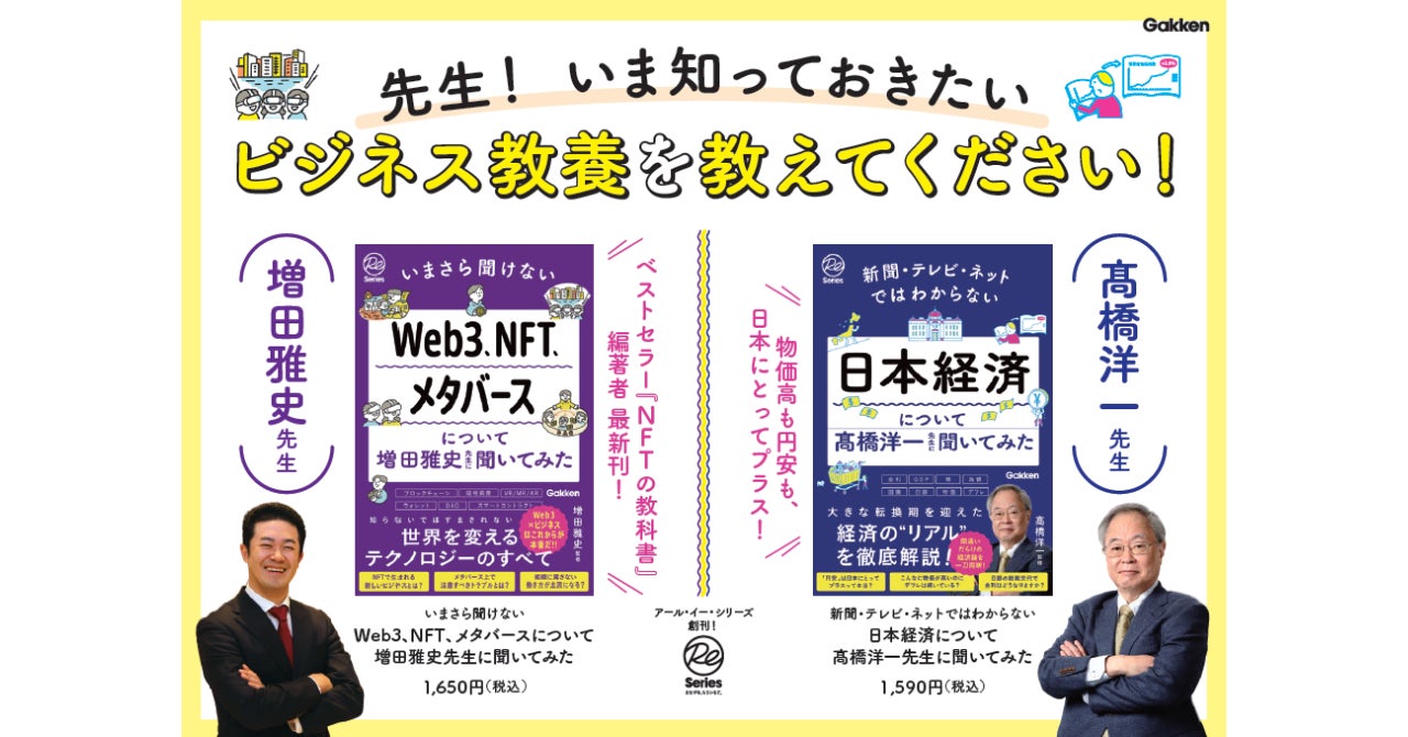 株式会社 学研ホールディングス(東京・品川/代表取締役社長:宮原博昭)のグループ会社、株式会社 Gakken(東京・品川/代表取締役社長:五郎丸徹)は、2023年3月30日(木)に『いまさら聞けないWeb3、NFT、メタバースについて増田雅史先生に聞いてみた』、『新聞・テレビ・ネットではわからない日本経済について髙橋洋一先生に聞いてみた』の2点を発売いたしました。今後、本シリーズでは池上彰監修の日本国憲法、佐藤優監修の資本論を刊行予定です。