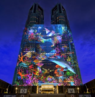 都庁舎の造形美を活かしつつ、視認性の高いコンテンツを上映