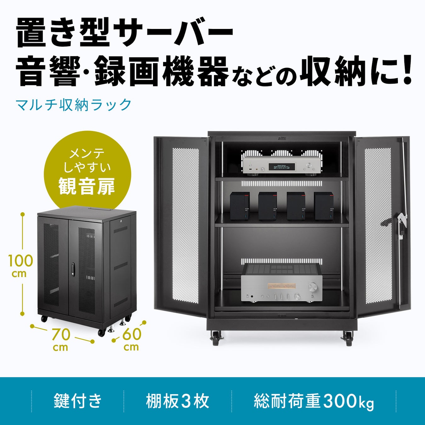 総耐荷重は300kgなので、サーバーなどの重い機器も収納できます。