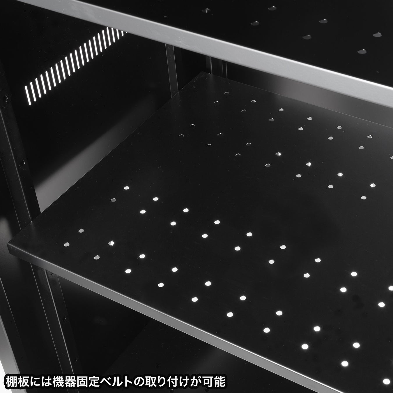 前面を大きく開放し、置き型サーバー・映像機器・録画機器など、様々な機器を収納できます。