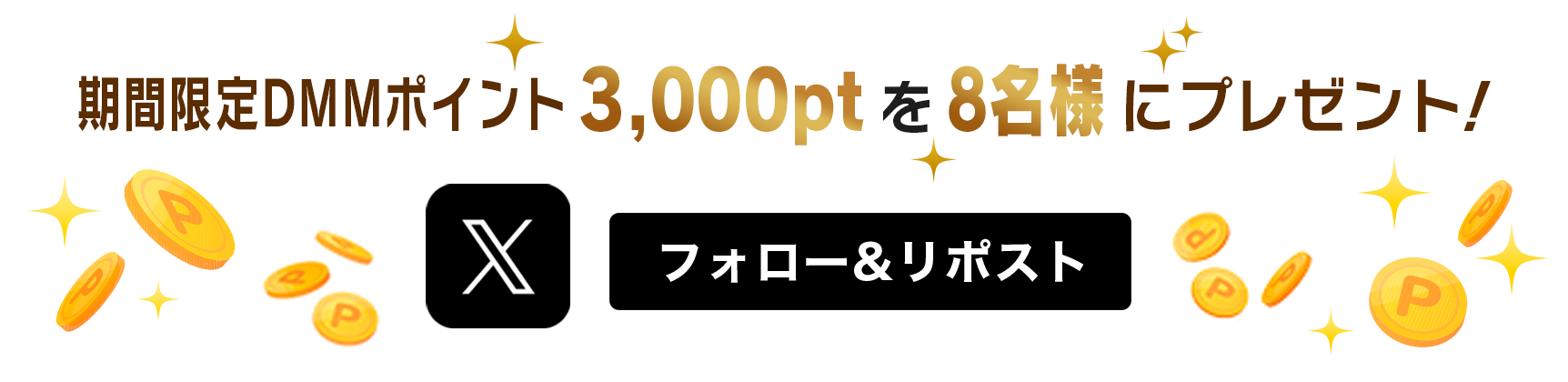 キャンペーン内容:「DMMスクラッチ」公式Xアカウントをフォロー&リポストされた方の中から抽せんで8名様に、DMMポイント「3,000pt」が当たるキャンペーンを実施いたします。