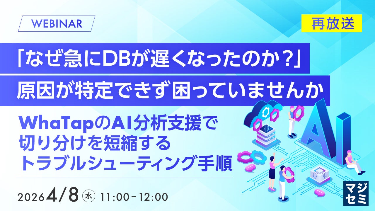マジセミ株式会社は「【再放送】「なぜ急にDBが遅くなったのか?」原因が特定できず困っていませんか」というテーマのウェビナーを開催します。