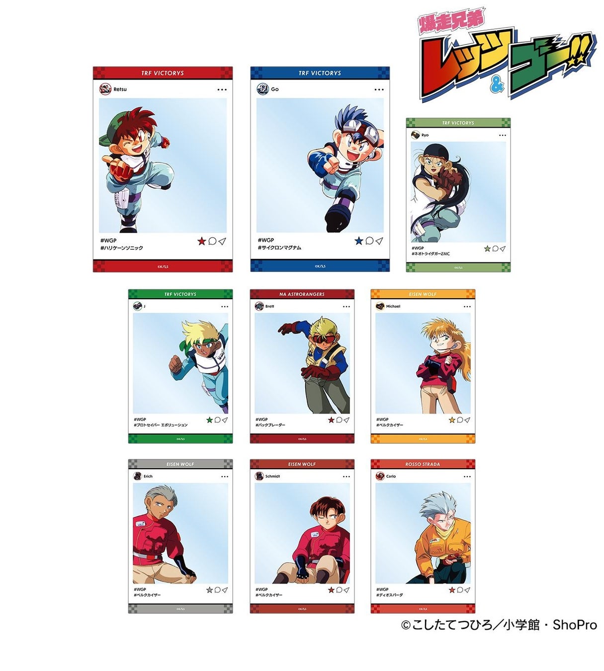 TVアニメ「爆走兄弟レッツ&ゴー!!」のトレーディングアクリルスタンド、トレーディングSNS風クリアカードなどの受注を開始!!アニメ・漫画のオリジナルグッズを販売する「AMNIBUS」にて