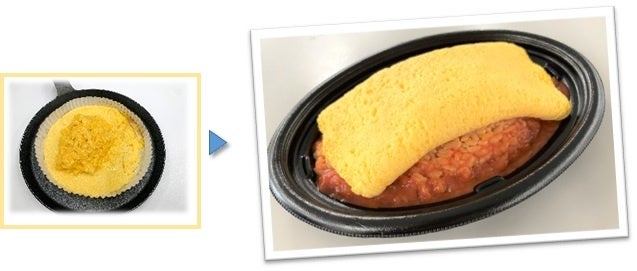 レンジで温めた後に玉子焼きを割ると、半熟風の玉子あんがとろっと溶け出します。玉子焼きを割るワクワク感に、ふわっとした食感とクリーミーな味わいが加わり、目で見て、そして食べてみて双方で楽しめるオムライスです。