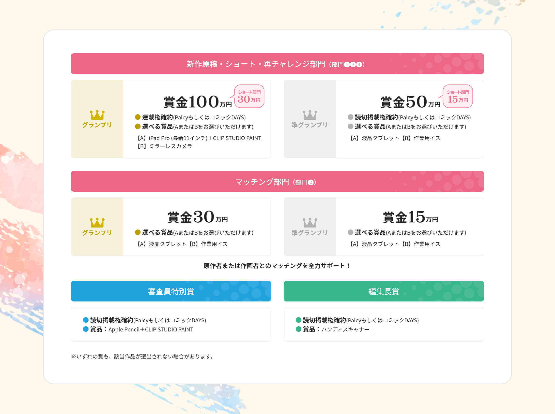 ①新作原稿部門(商業未発表。完成原稿。扉含む16ページ以上)