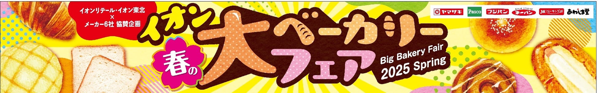 イオンは2025年4月2日(水)~4月8日(火)まで※1)、本州・四国の「イオン」「イオンスタイル」約550店舗にて※2)、「春の大ベーカリーフェア2025」を開催します。本年は、山崎製パン(株)、敷島製パン(株)(パスコ)、フジパン(株)、(株)YKベーキングカンパニー、(株)あわしま堂のメーカー5社に、第一屋製パン(株)が加わり、イオン過去最大計6社の協賛でスケールアップして展開します。