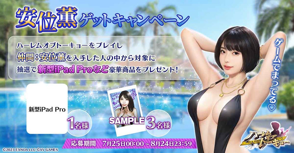 合同会社EXNOA(本社:東京都港区、CEO:村中 悠介、URL:https://games.dmm.com/)は、アウトローハーレム系経営RPG『ハーレムオブトーキョー』にて、2024年7月25日(木)より安位薫さんとのコラボイベントを開始している事をお知らせいたします。