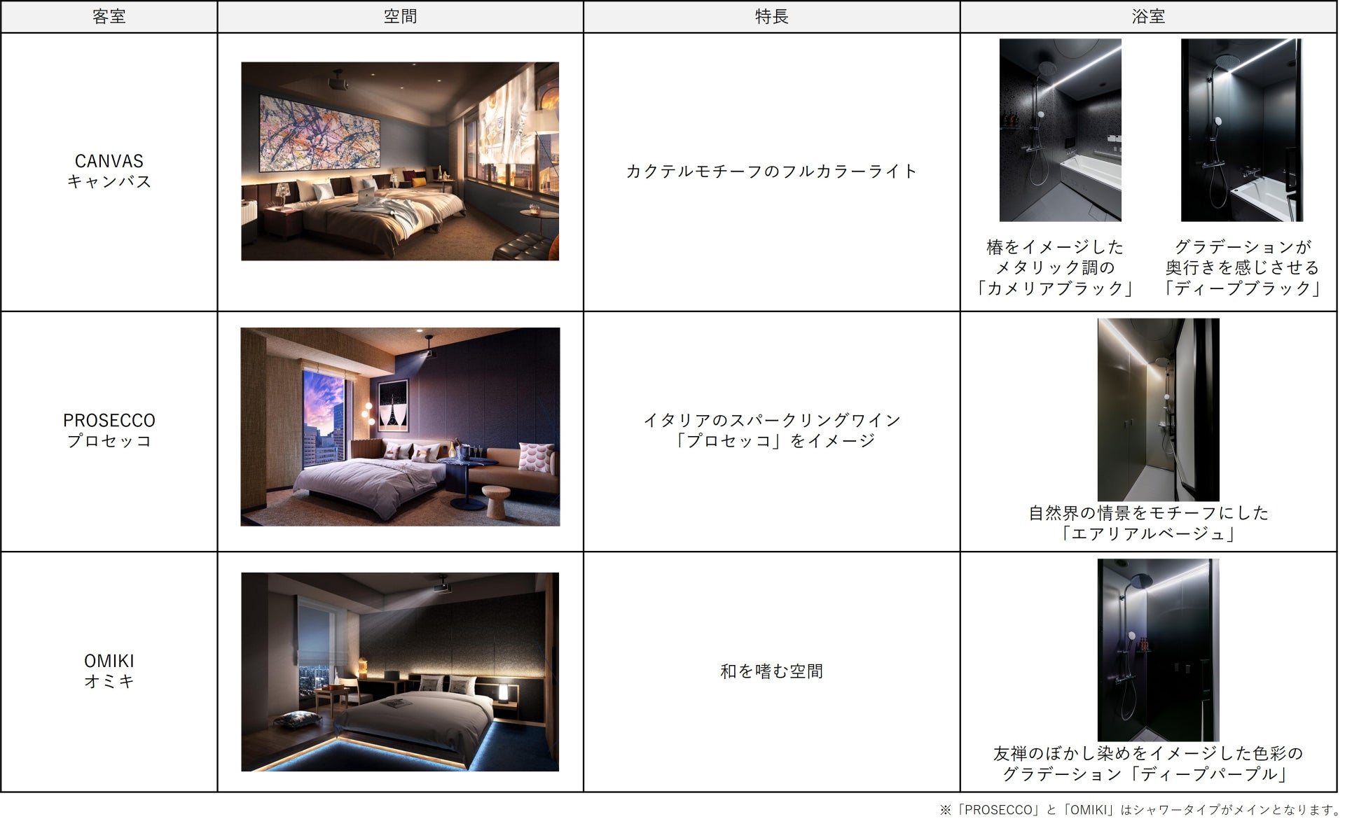 客室のデザインは〝お酒〟のエッセンスが散りばめられたこだわりのある空間となっており、当社の「i-X INTEGRAL」の「シンプルな美しさ」「心地良さ」「質感へのこだわり」と融合します。