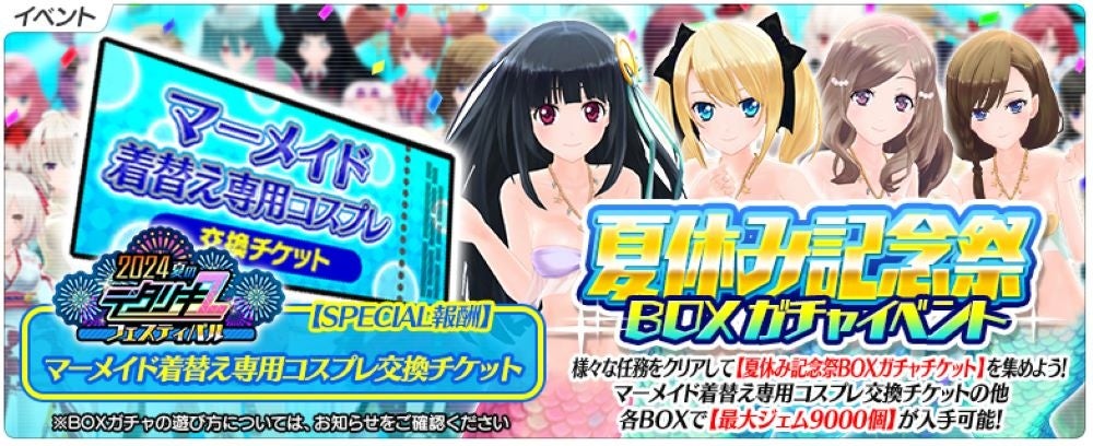 ▼ジェムや着替え専用コス交換チケットもらえる【2024夏BOXガチャイベント】開催!