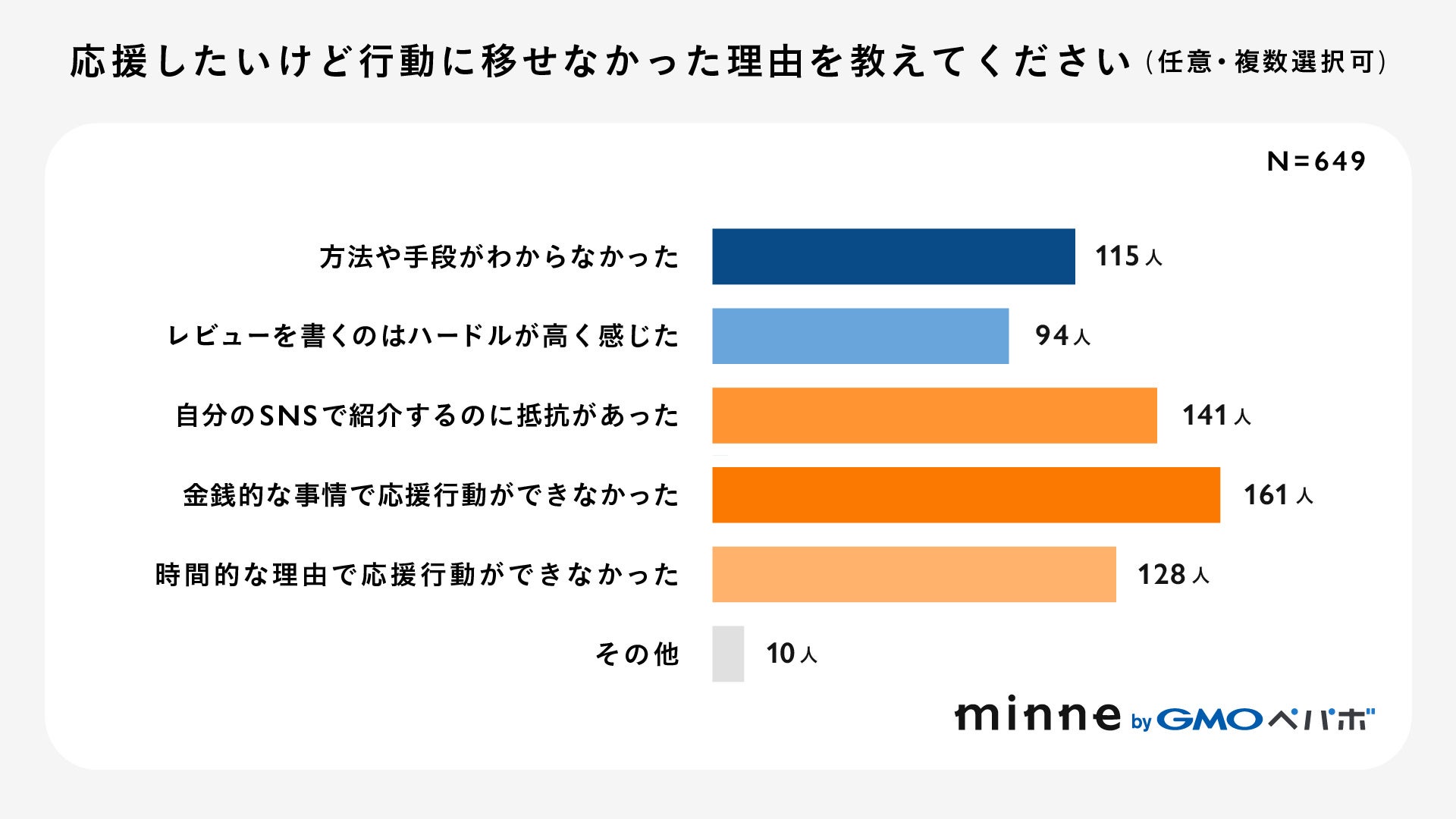 その一方で、「応援したい気持ちはあったのに、行動に移せなかった理由」として、「応援の方法や手段がわからなかった」という声も多く聞かれました。