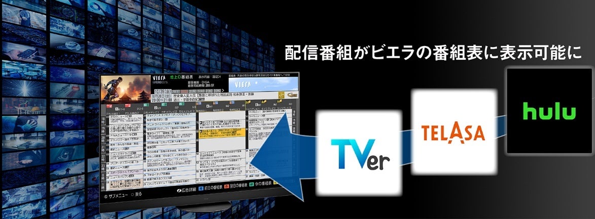 4Kテレビ「ビエラ」の番組表が「TVer」「TELASA」「Hulu」配信番組の表示に対応