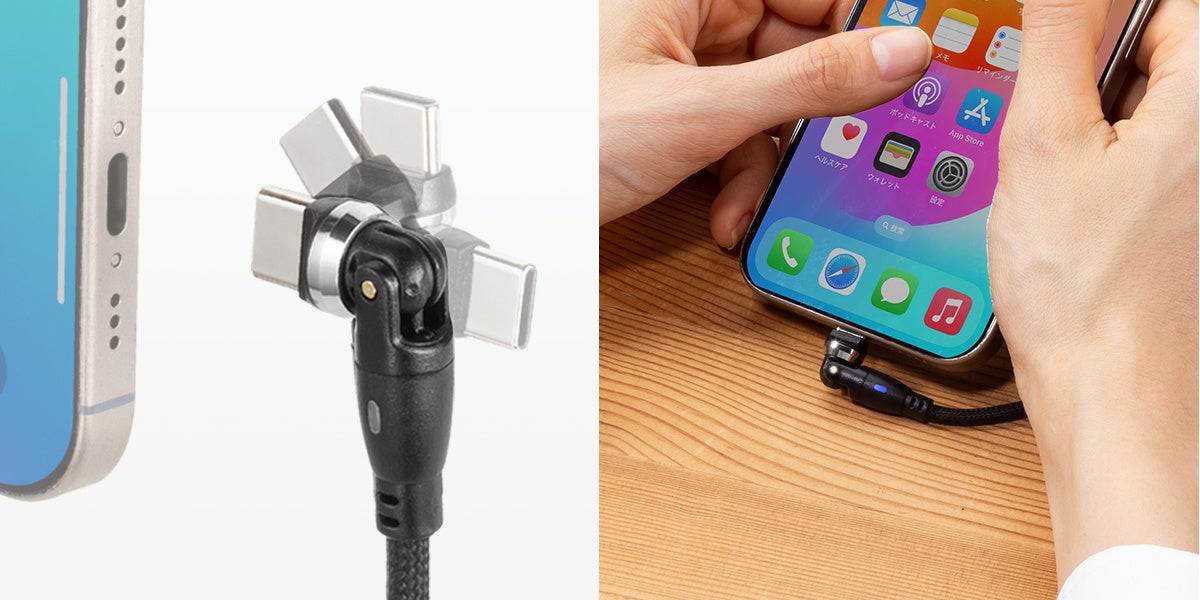 片側のコネクタがくるくる曲がり、コネクタの向きを気にせず使えるType-C-A回転ケーブルを発売