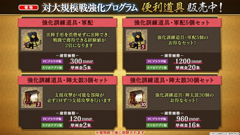 ■「対大規模戦強化プログラム」専用便利道具を期間限定で販売中!