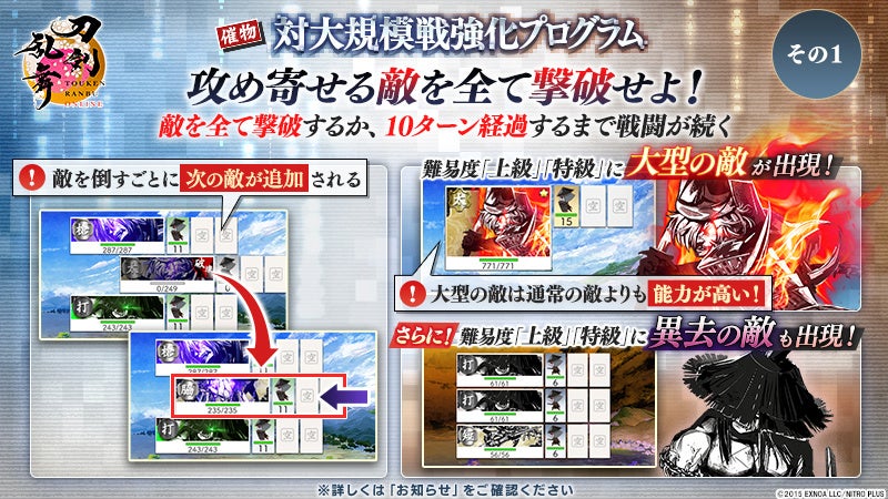 ▼『刀剣乱舞ONLINE』新イベント 「対大規模戦強化プログラム」
