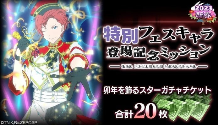 内容:新たなフェスキャラ「【卯年を飾るスター】ラインハルト★3」の登場を記念して、「卯年を飾るスターガチャチケット」合計20枚が手に入るミッションを開催します。