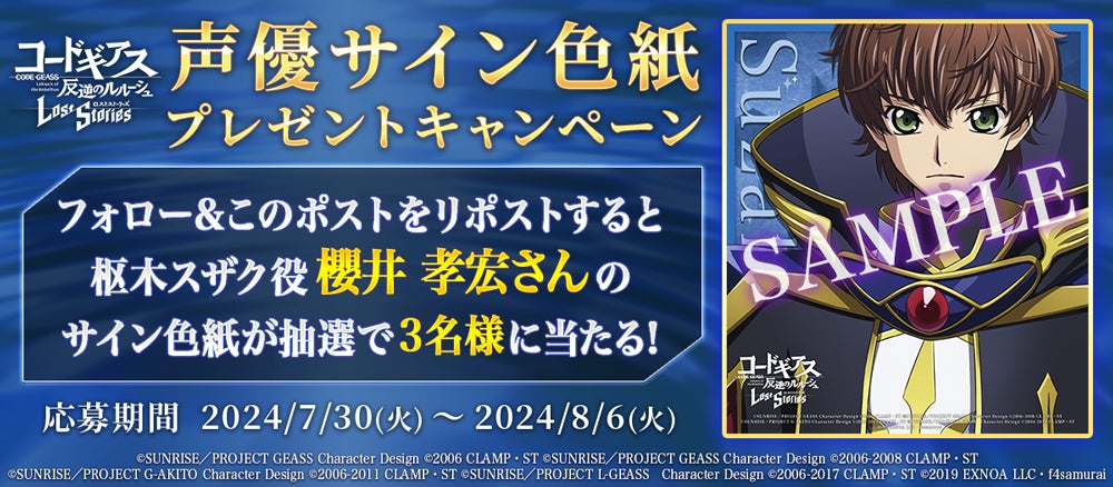 ★4スザク[皇帝の剣]の登場を記念し、スザク役 櫻井孝宏さんのサイン色紙キャンペーンを開催!