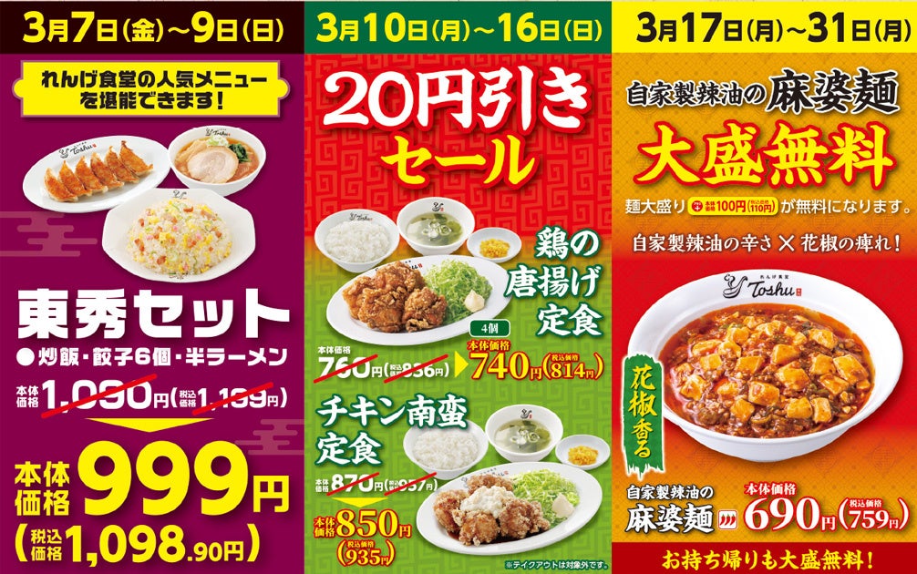 中華料理店「れんげ食堂Toshu」「中華東秀」を展開しているイオングループのオリジン東秀株式会社(本社:東京都調布市/代表:後藤 雅之)は、3月7日(金)「れんげ食堂Toshu 亀有北口店」を開店いたします。