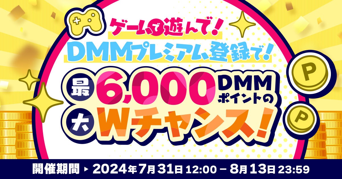 DMM GAMES夏のポイントバックキャンペーン『ゲームで遊んで!DMMプレミアムに登録で!最大6,000DMMポイントのWチャンス!』開催!
