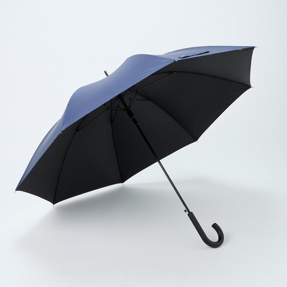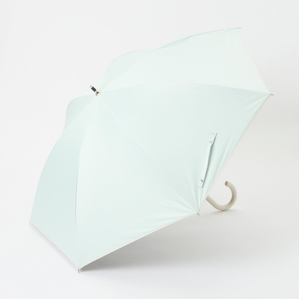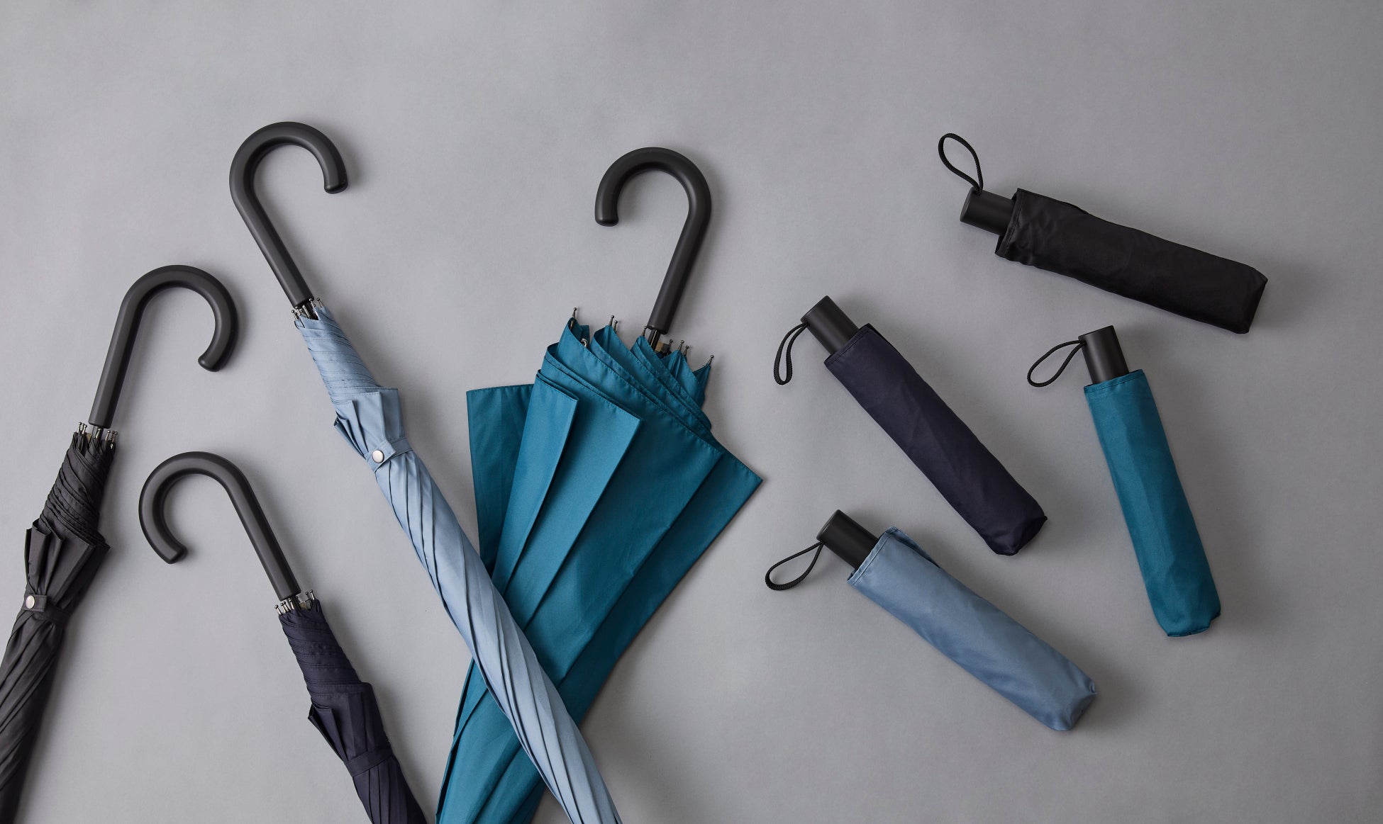 軽量タイプの晴雨兼用傘は、無地べースで2色使いのバイカラーと縁取りを施したパイピングの2タイプを展開します。男性向けはユニセックスでも使いやすいクロやアオなどのカラーを品揃えしています。