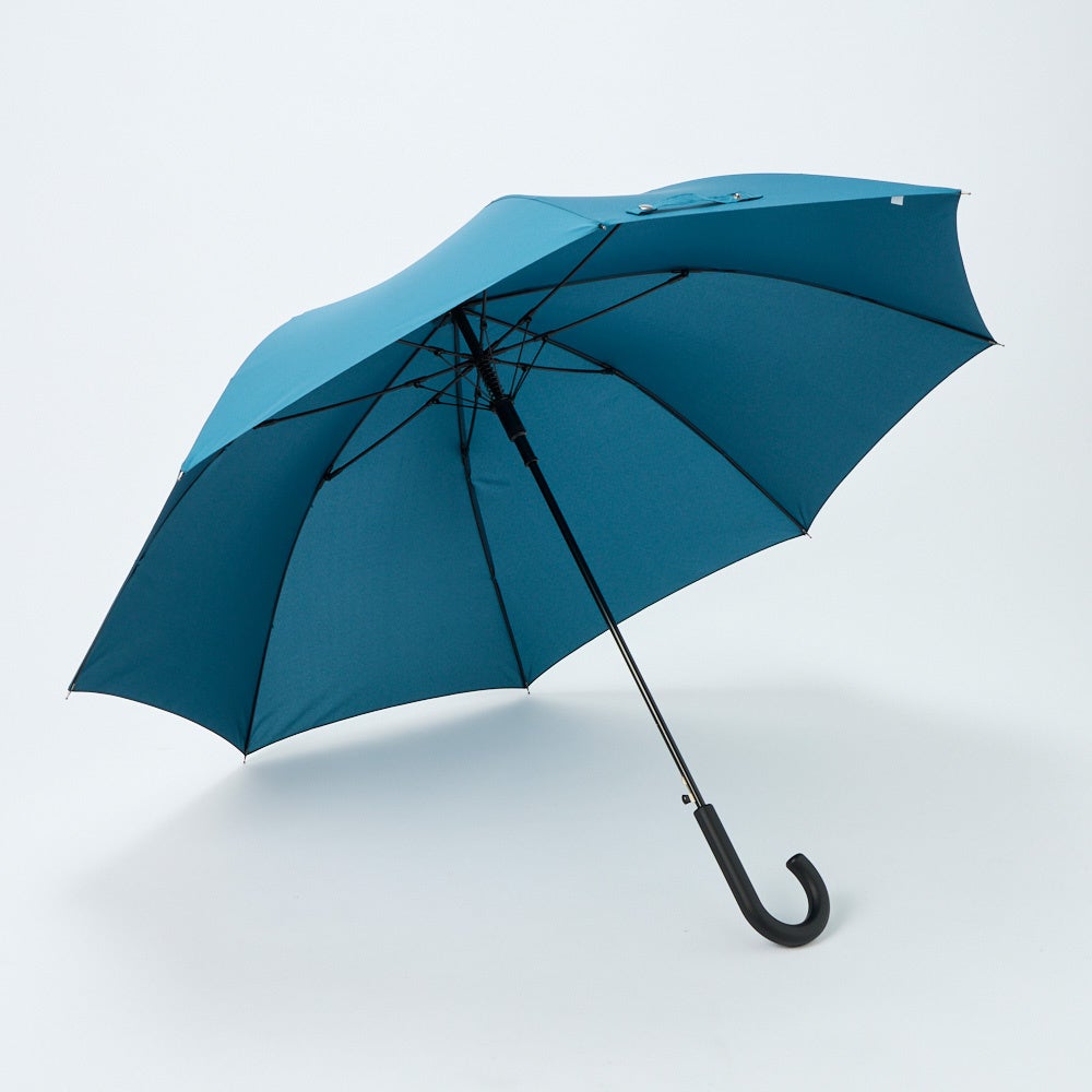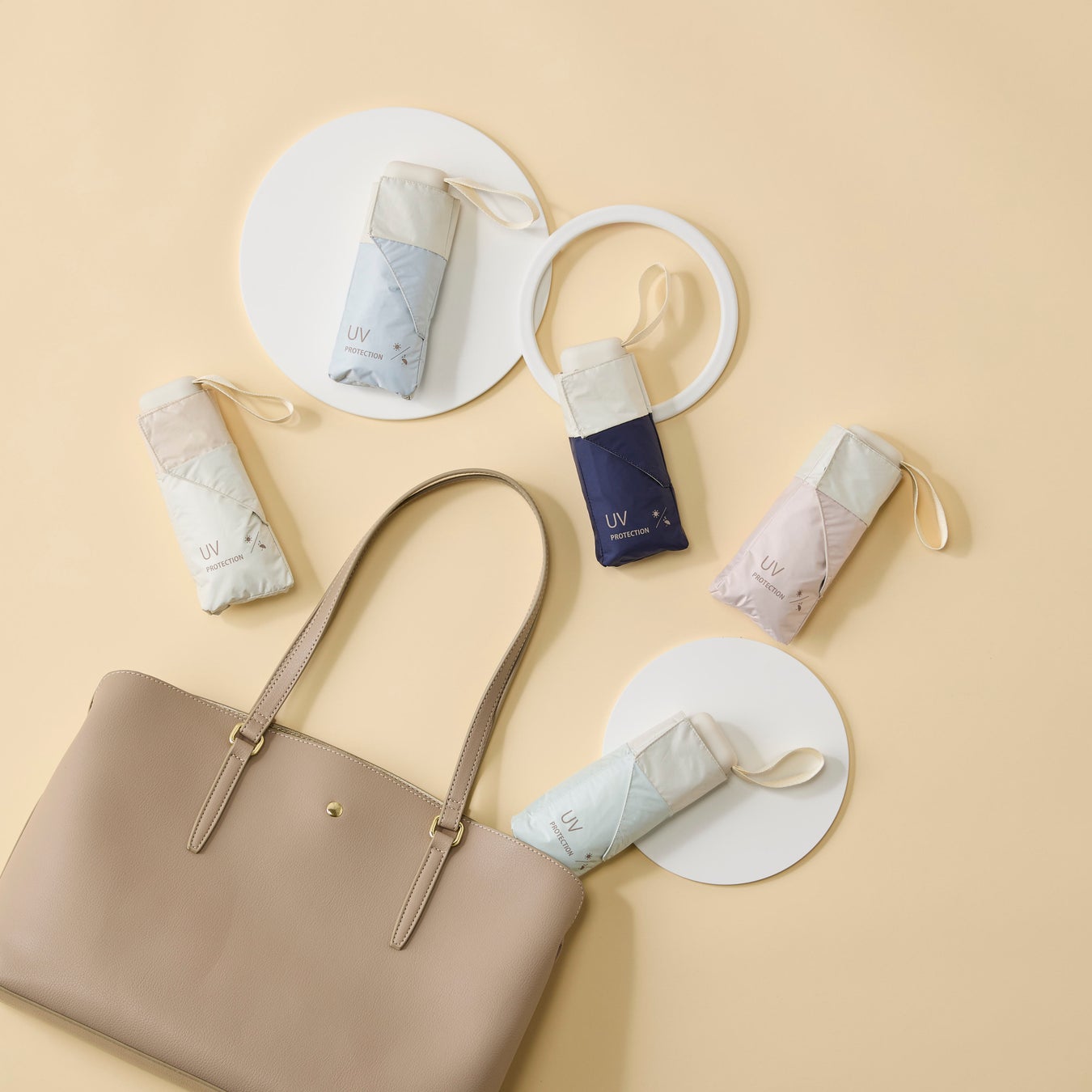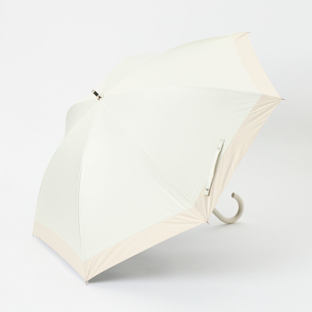 軽量タイプの晴雨兼用傘は、無地べースで2色使いのバイカラーと縁取りを施したパイピングの2タイプを展開します。男性向けはユニセックスでも使いやすいクロやアオなどのカラーを品揃えしています。