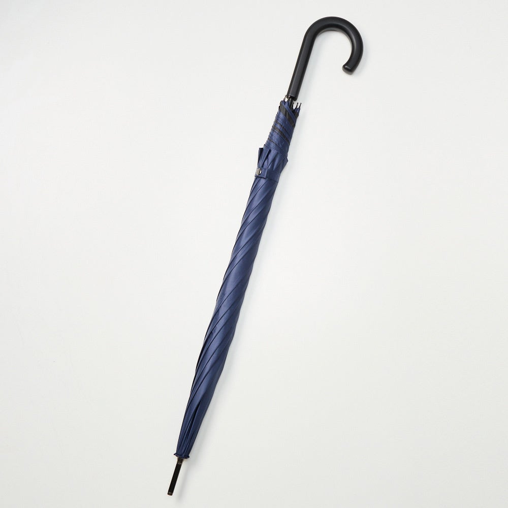風に強い耐風骨仕様になっており、ひっくり返っても折れにくいです。折りたたみは傘が入れやすい間口が広がる収納袋付き、親骨の長さ60cmの大きめサイズです。長傘は持ちやすい大きめグリップとさらに親骨の長さ65cmの大きいサイズとなっています。