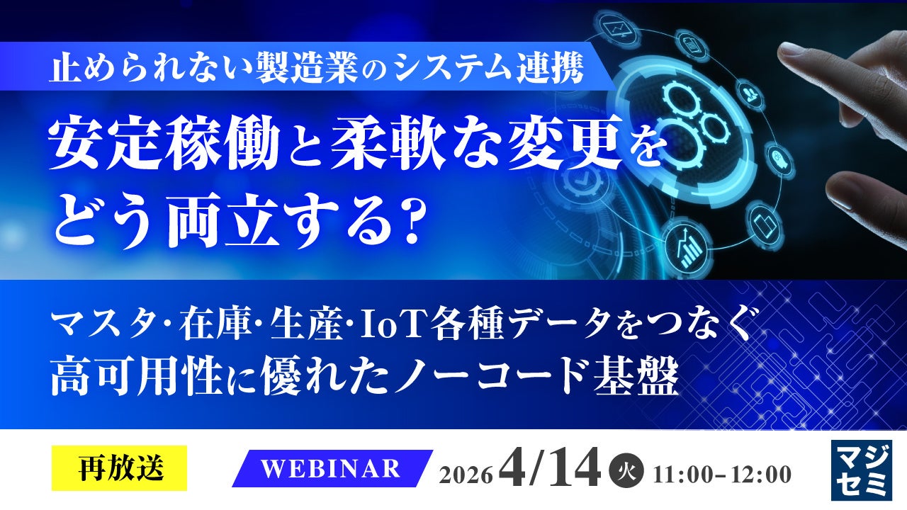マジセミ株式会社は「【再放送】止められない製造業のシステム連携、安定稼働と柔軟な変更をどう両立する?」というテーマのウェビナーを開催します。