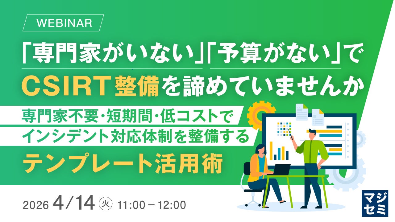 マジセミ株式会社は「「専門家がいない」「予算がない」でCSIRT整備を諦めていませんか」というテーマのウェビナーを開催します。