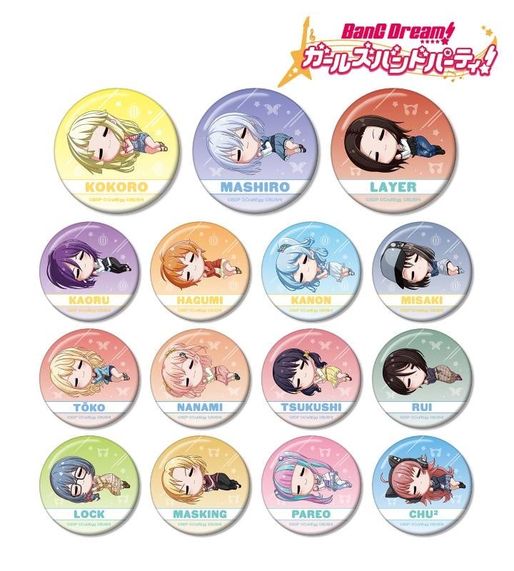 種類 :全35種(戸山 香澄、花園 たえ、牛込 りみ、山吹 沙綾、市ヶ谷 有咲、美竹 蘭、青葉 モカ、上原 ひまり、宇田川 巴、羽沢 つぐみ、丸山 彩、氷川 日菜、白鷺 千聖、大和 麻弥、若宮 イヴ、湊 友希那、氷川 紗夜、今井 リサ、宇田川 あこ、白金 燐子、弦巻 こころ、瀬田 薫、北沢 はぐみ、松原 花音、奥沢 美咲、倉田 ましろ、桐ヶ谷 透子、広町 七深、二葉 つくし、八潮 瑠唯、レイヤ、ロック、マスキング、パレオ、チュチュ)