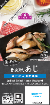 特長 :ニュージーランド産のあじを使用。ひものの定番として人気の魚種です。塩こうじと昆布焼塩で柔らかさとうまみのある味わいです。
