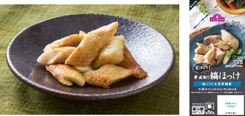 特長 :アメリカ産の縞ほっけ使用。ほろほろとした身の食感を楽しめます。塩こうじと昆布焼塩で柔らかさとうまみのある味わいです。