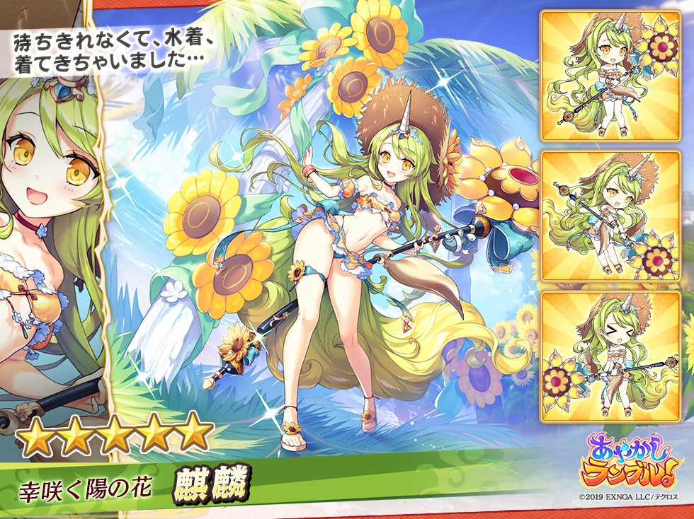 合同会社EXNOA(本社:東京都港区、CEO:村中 悠介、URL:https://games.dmm.com/)が運営するDMM GAMESにおいて、あやかし美少女たちと冒険する、迎撃型爽快スキルバトルRPG『あやかしランブル!』(https://ayarabu.jp/)は、7月31日に、新たに期間限定「★5 アヤノ」「★5 麒麟」を追加したことを発表しました。
