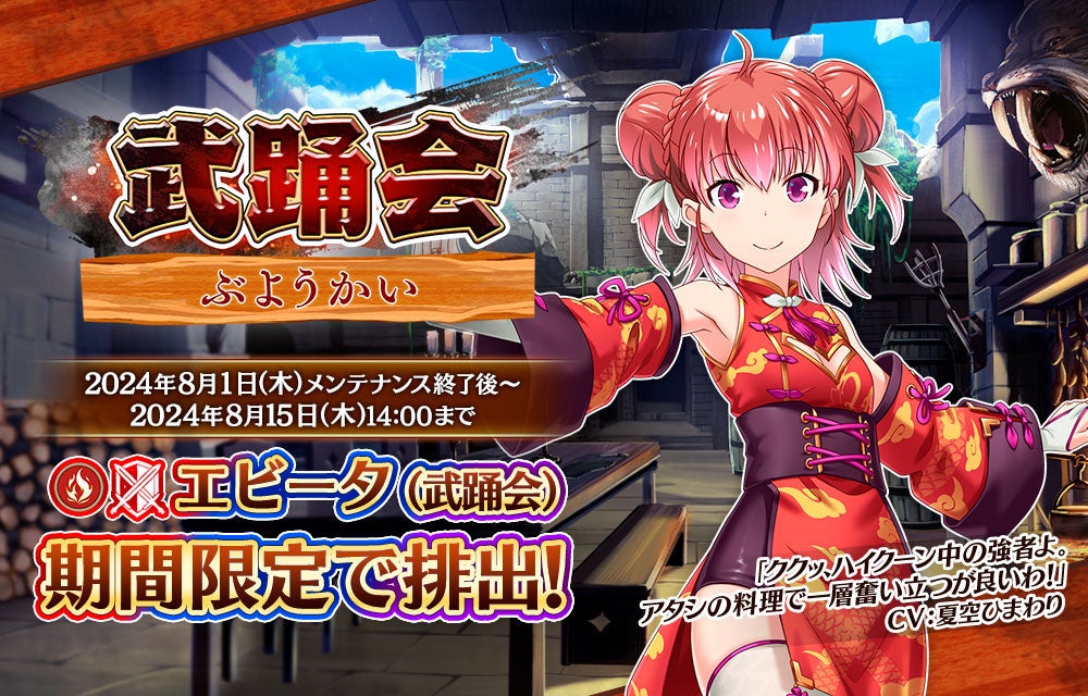 エビータが武踊会の新衣装に身を包み、期間限定召喚に登場します!