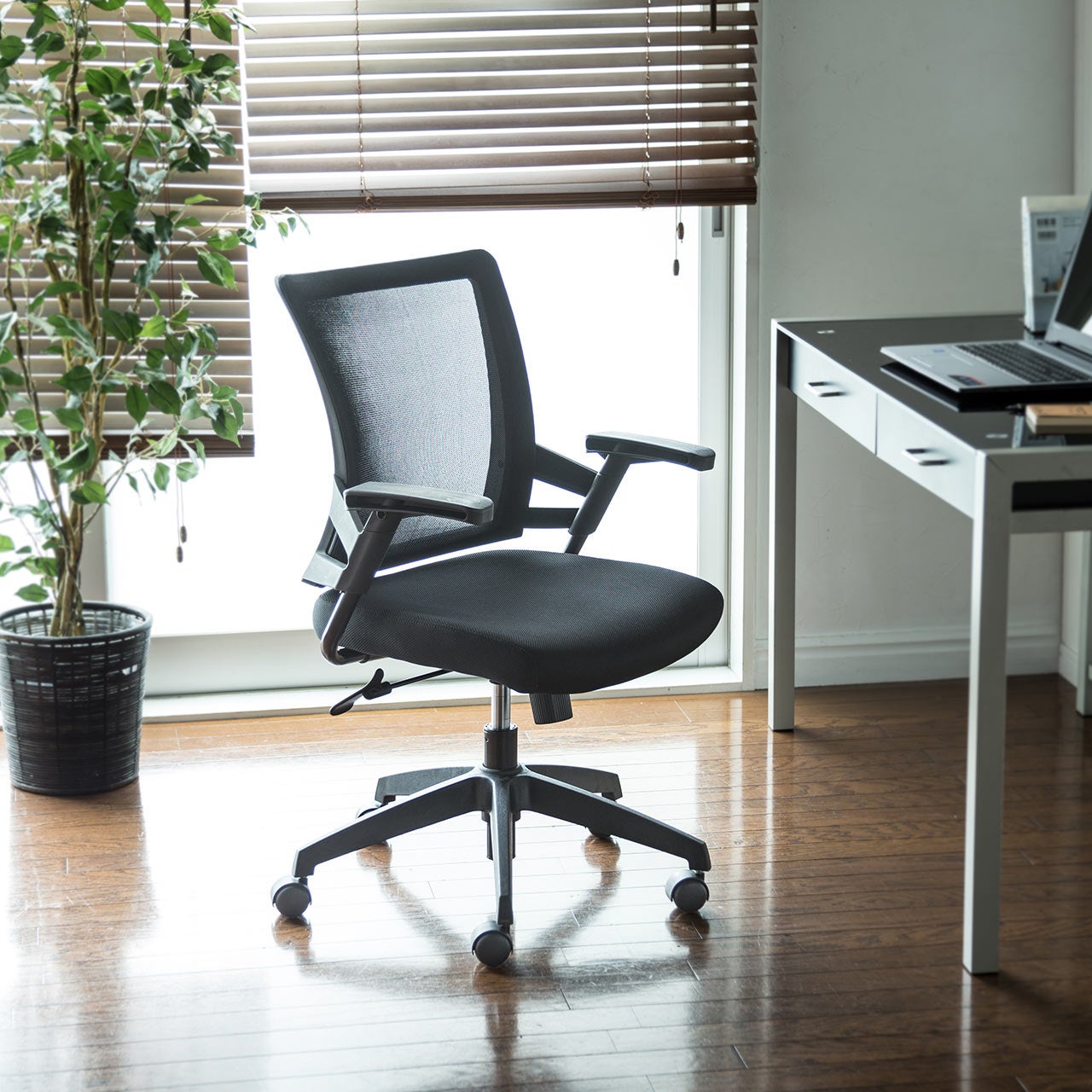 本製品は通気性抜群のメッシュ素材を使用したオフィスチェアです。背もたれはミドルバックを採用。ハイバックタイプと比べ、コンパクトで場所を取らず圧迫感を与えません。