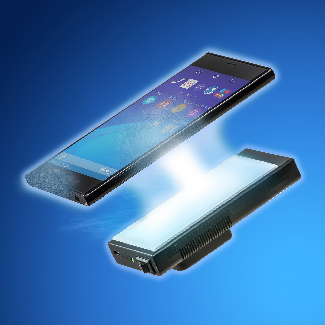 スマホを挟み込むホルダータイプではないので多様な機種に対応。静音設計でファンの音も気になりません。