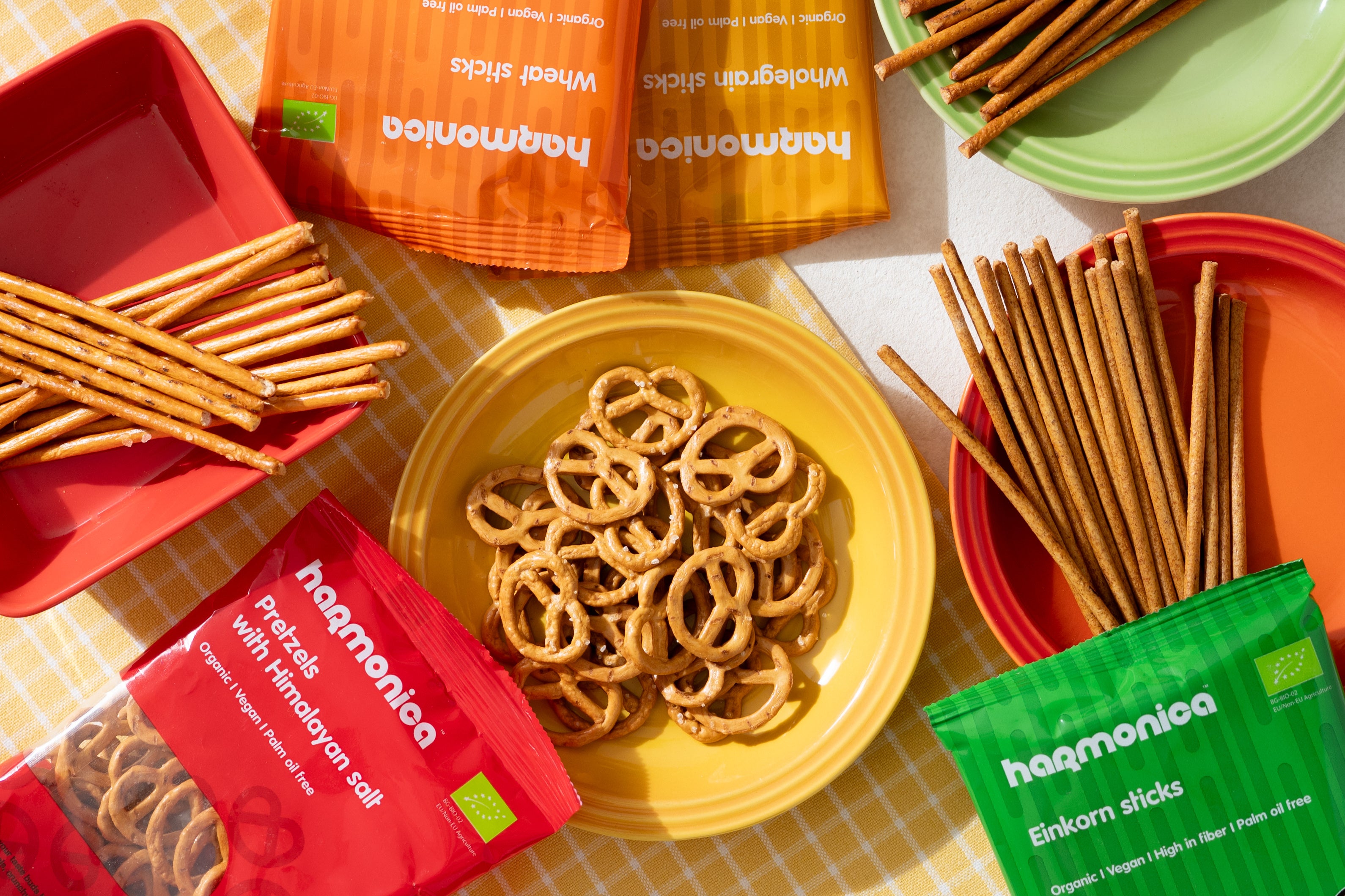 伝統的なプレッツェルの形をした気軽に楽しめるスナック菓子。有機小麦の