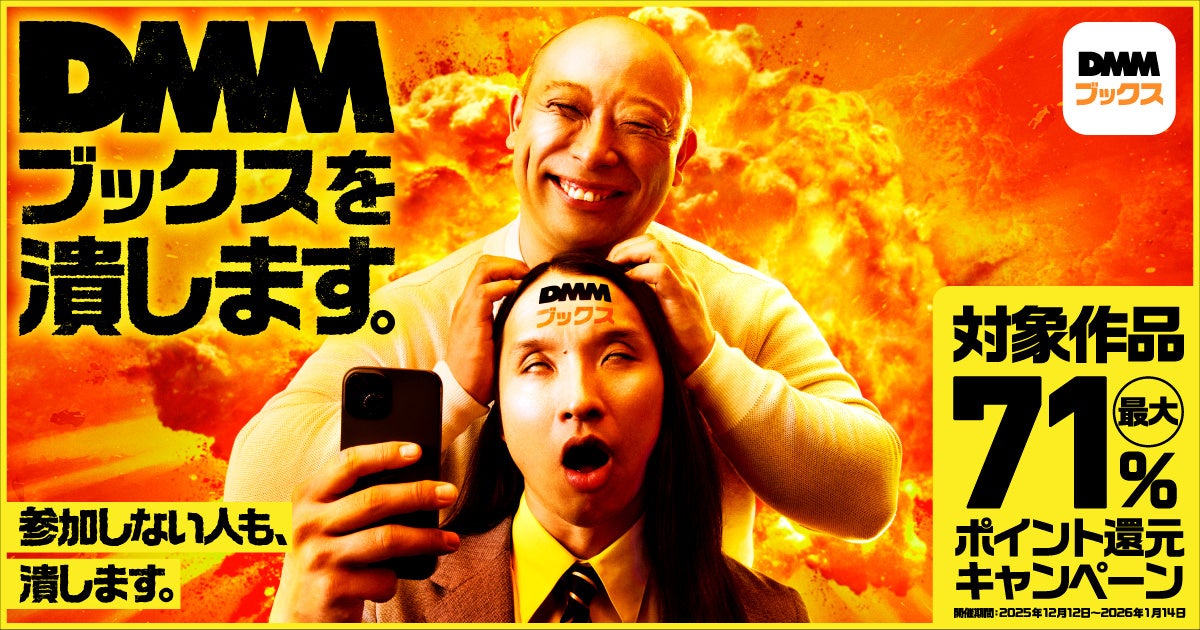 合同会社DMM.com(本社:東京都港区、PFカンパニーCEO:村中悠介、以下DMM)の電子書籍サービス「DMMブックス」(https://book.dmm.com/)は、2025年12月12日(金)から2026年1月14日(水)までの期間、お笑い芸人のトム・ブラウンをキャンペーンイメージキャラクターに起用し、最大71%ポイント還元をはじめとする「DMMブックス SUPER SALE」を開催いたします。