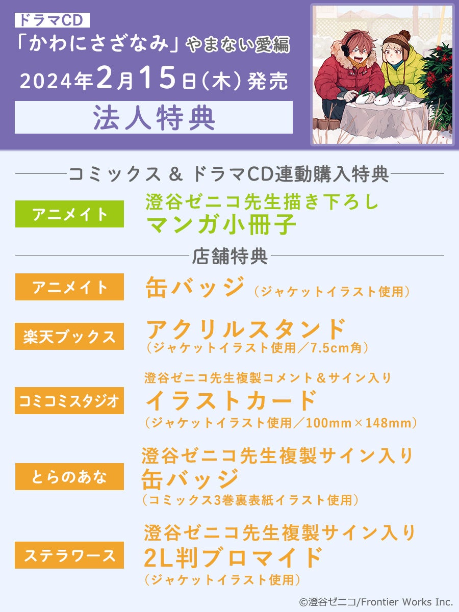 ドラマCD「かわにさざなみ」やまない愛編、澄谷ゼニコ先生描き下ろしのジャケットイラスト公開!さらに、発売記念展示&店頭抽選会開催も決定!