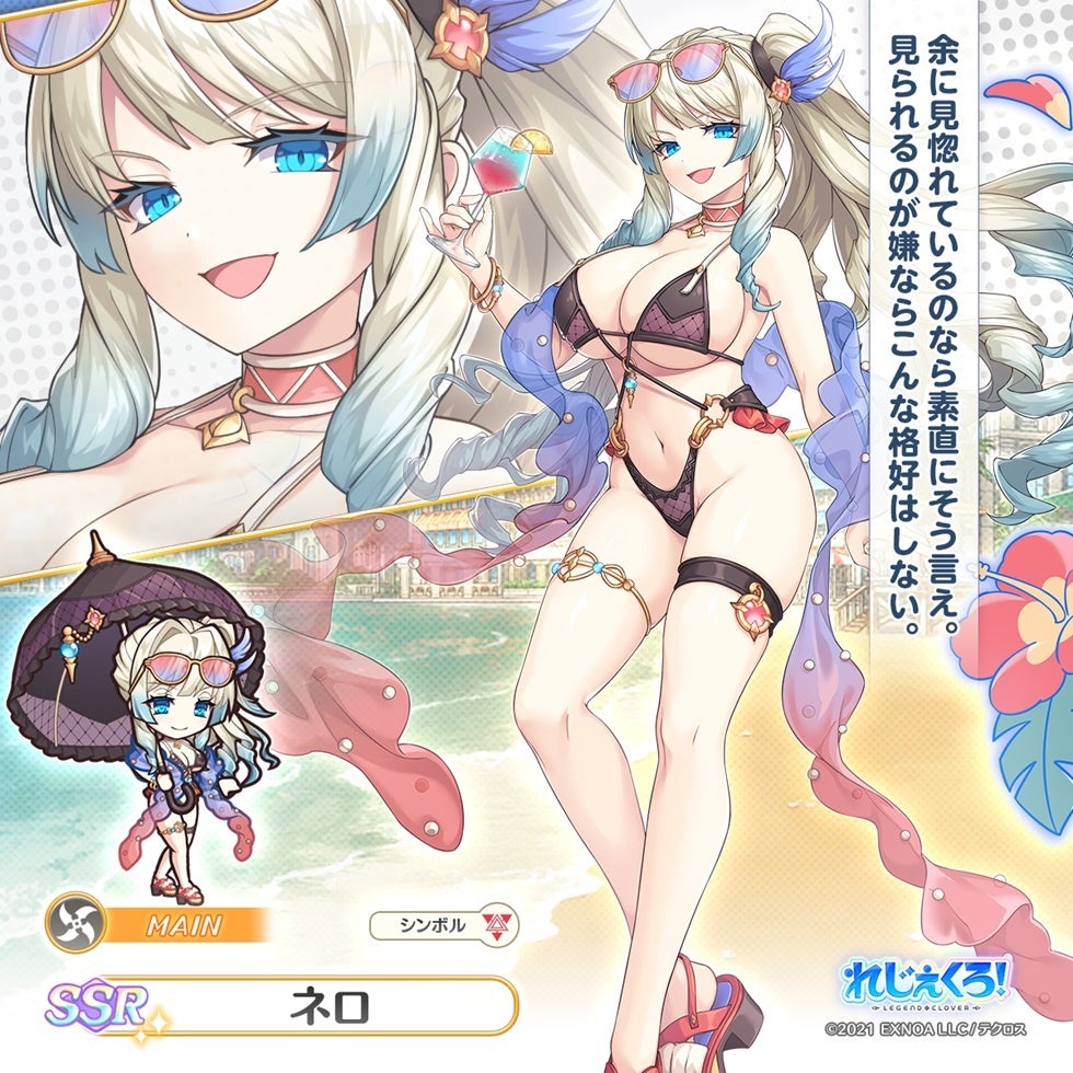 合同会社EXNOA(本社:東京都港区、CEO:村中 悠介、URL:https://games.dmm.com/)が運営するDMM GAMESにおいて、真の英雄となる王道ファンタジー『れじぇくろ!~レジェンド・クローバー~』(https://www.legend-clover.net/)にて、「フルフル」「ジークフリート」「ネロ」が水着姿で登場!さらに、イベント「恋と友情の波間に・後編」が開催!