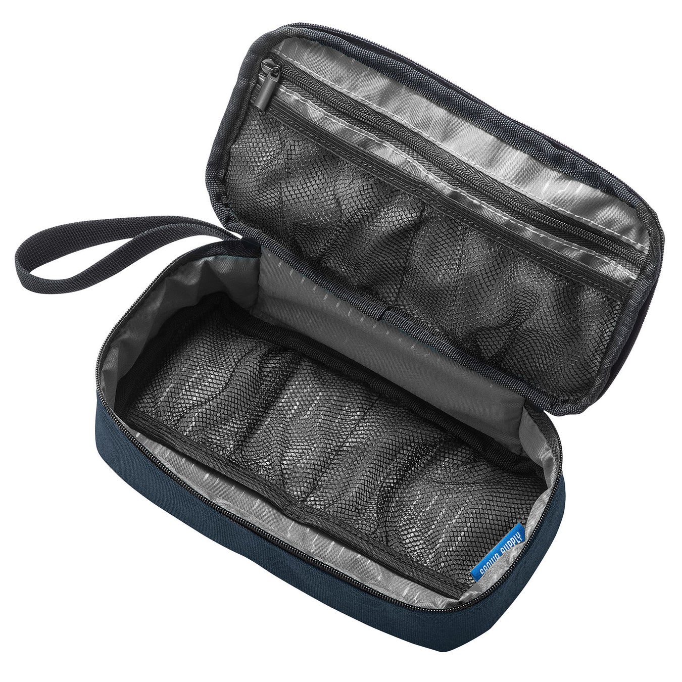 ガジェットポーチ トラベルポーチ 旅行 出張 収納 整理 小物入れ 内寸18.5cm 奥行13cm 5ポケット ストラップ付 ネイビー