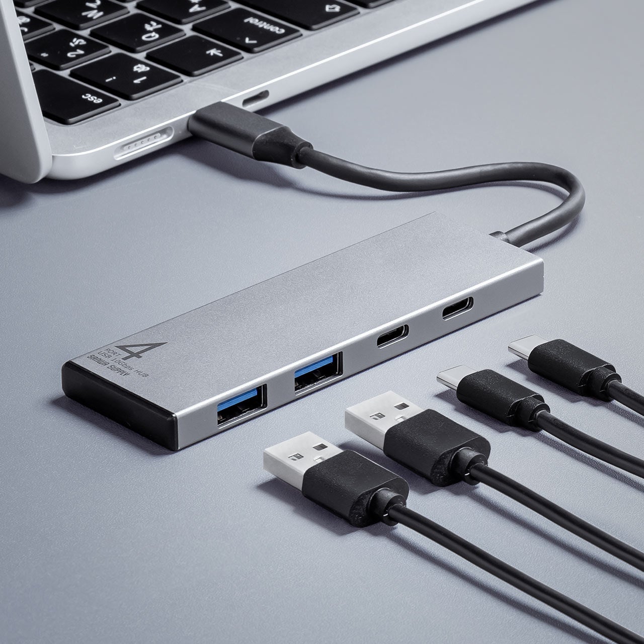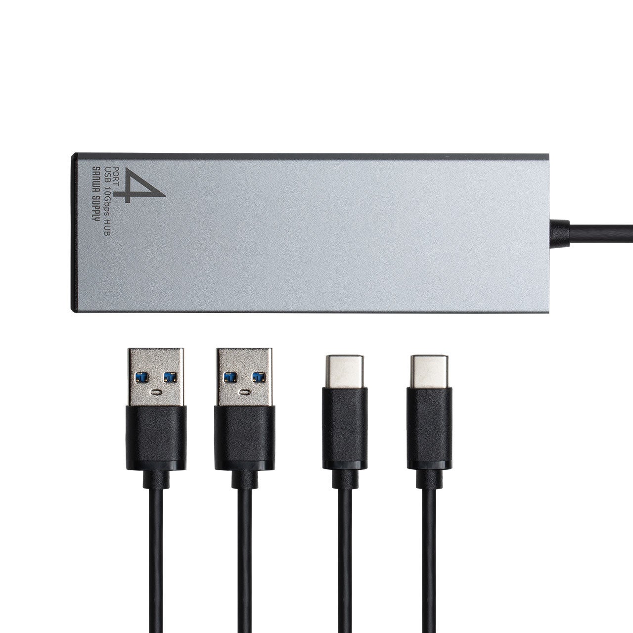 ・【薄型 軽量】USB TypeC 4ポートハブ【A×2 C×2】ケーブル一体型 USB3.2Gen2対応 10Gbps高速対応 アルミ放熱 Windows Mac iPad Chromebook 対応 400-HUBC29GM