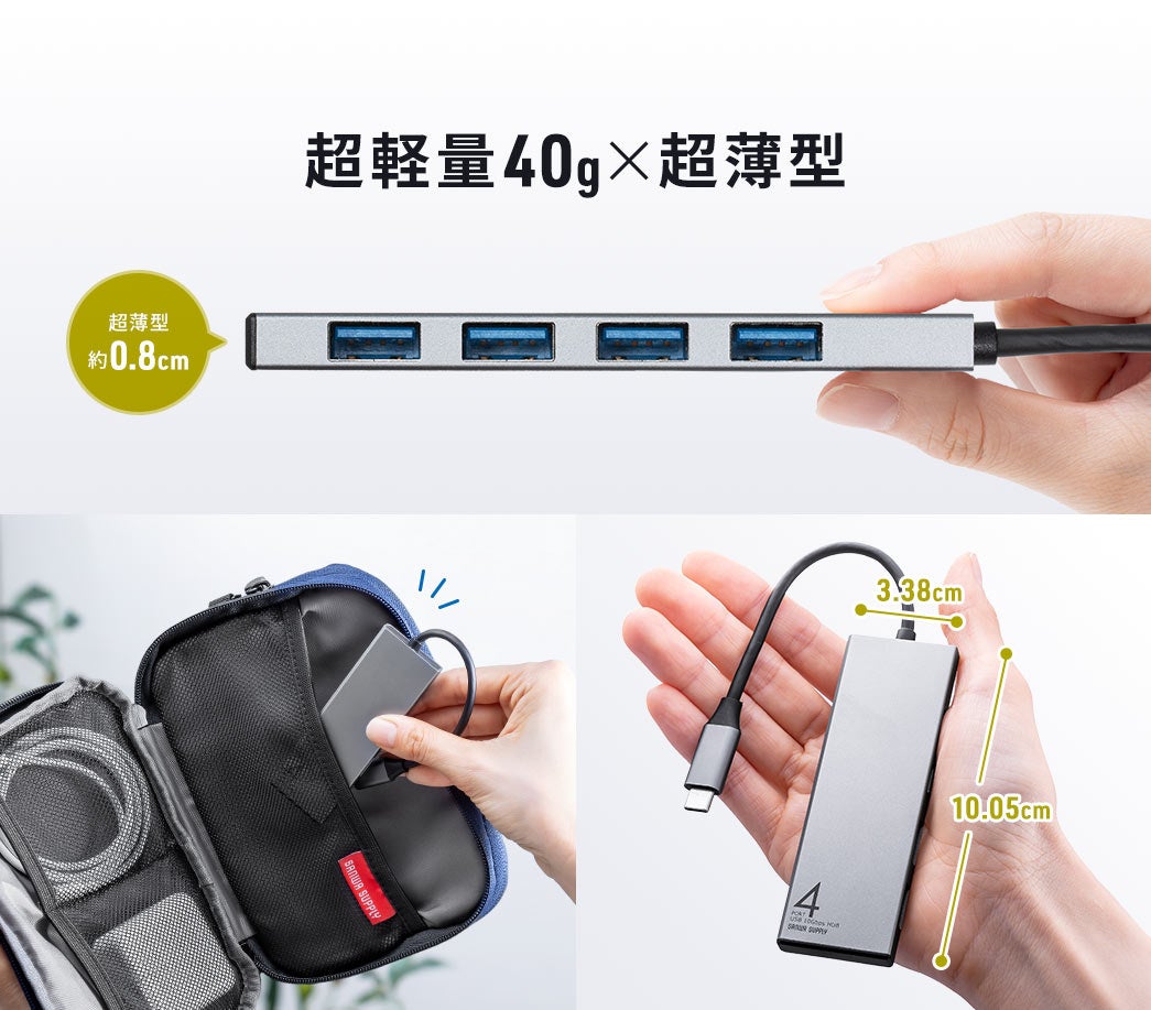 軽くて薄い!持ち運びに便利なUSB 10Gbpsに対応したtype-C接続のUSBハブを9月4日に発売