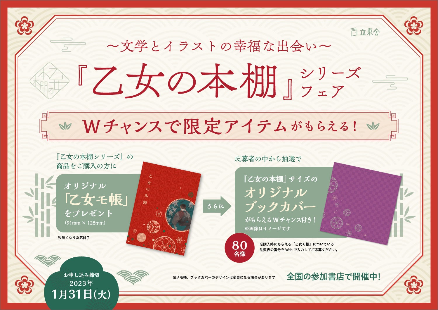 さらに、抽選で80名様に乙女の本棚サイズのオリジナルブックカバーが当たるプレゼント企画もご用意しております!