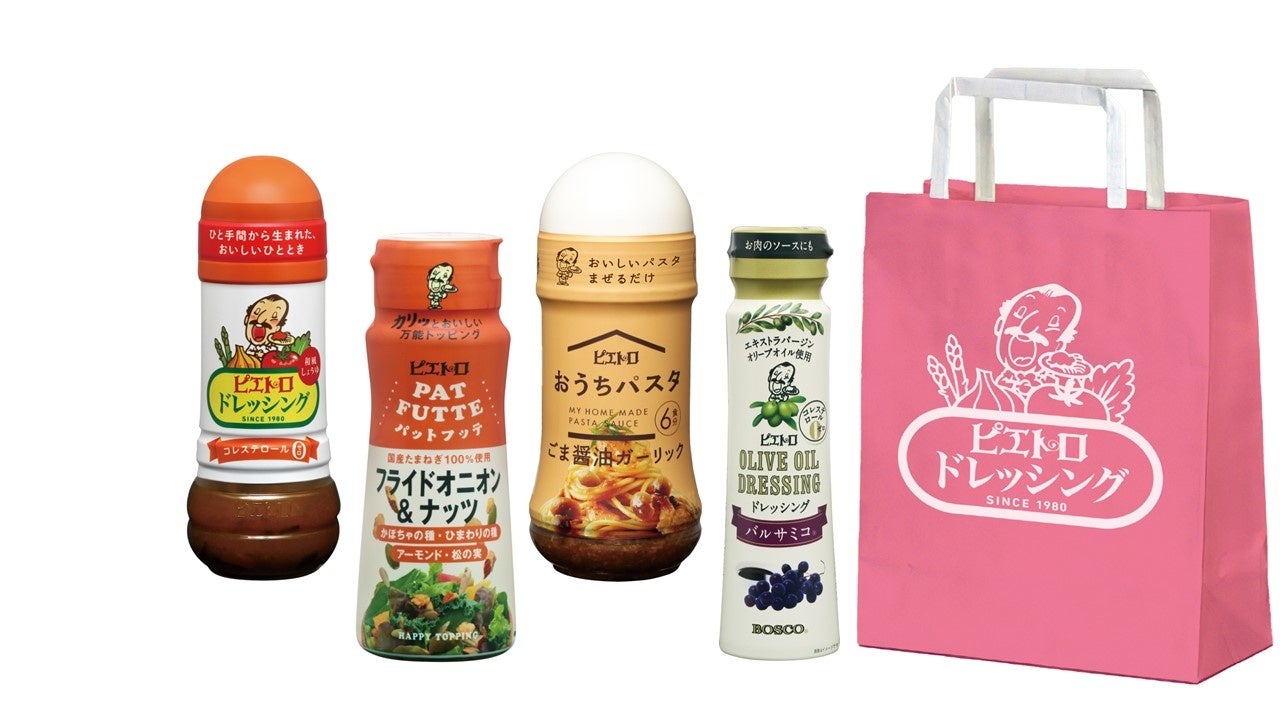 サラダやパスタなどに使える、ピエトロの人気調味料を詰め合せたセットをご用意します。(限定店舗での取り扱いです)