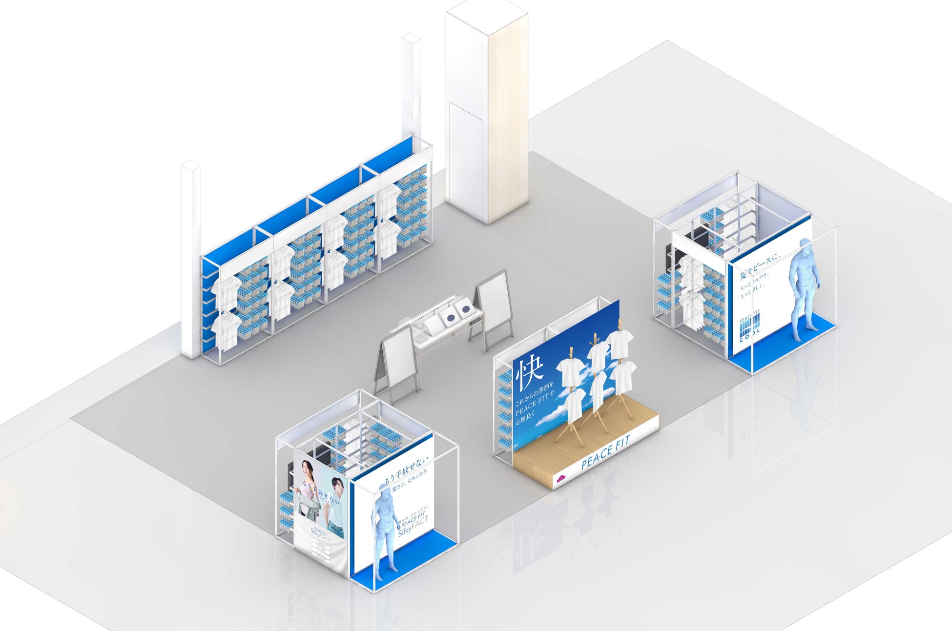 3月20日(木・祝)より順次、限定6店舗にて、「トップバリュ ピースフィット」の快適さを体感いただけるショップinショップを初展開します。ショップinショップでは、ピースフィットについて知っていただく動画などの商品紹介、触れて体感いただけるコーナーのほか、商品もご購入いただけます。