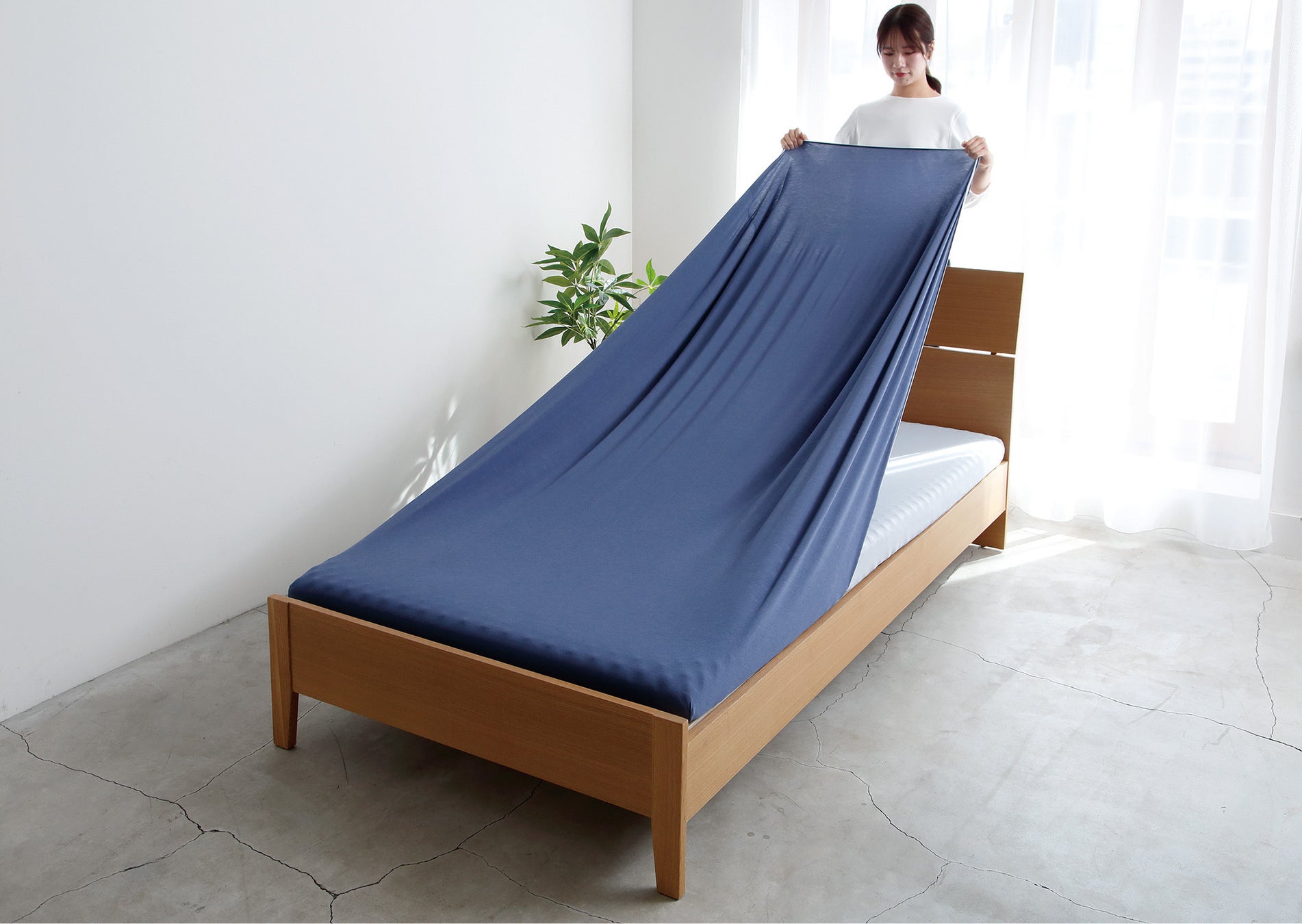 体が沈み過ぎない適度なかたさで、ベルト付きで折り畳みも可能なベッド用マットレスと、グーンと伸ばして簡単に着脱できるシーツのセットです。新生活準備におすすめです。