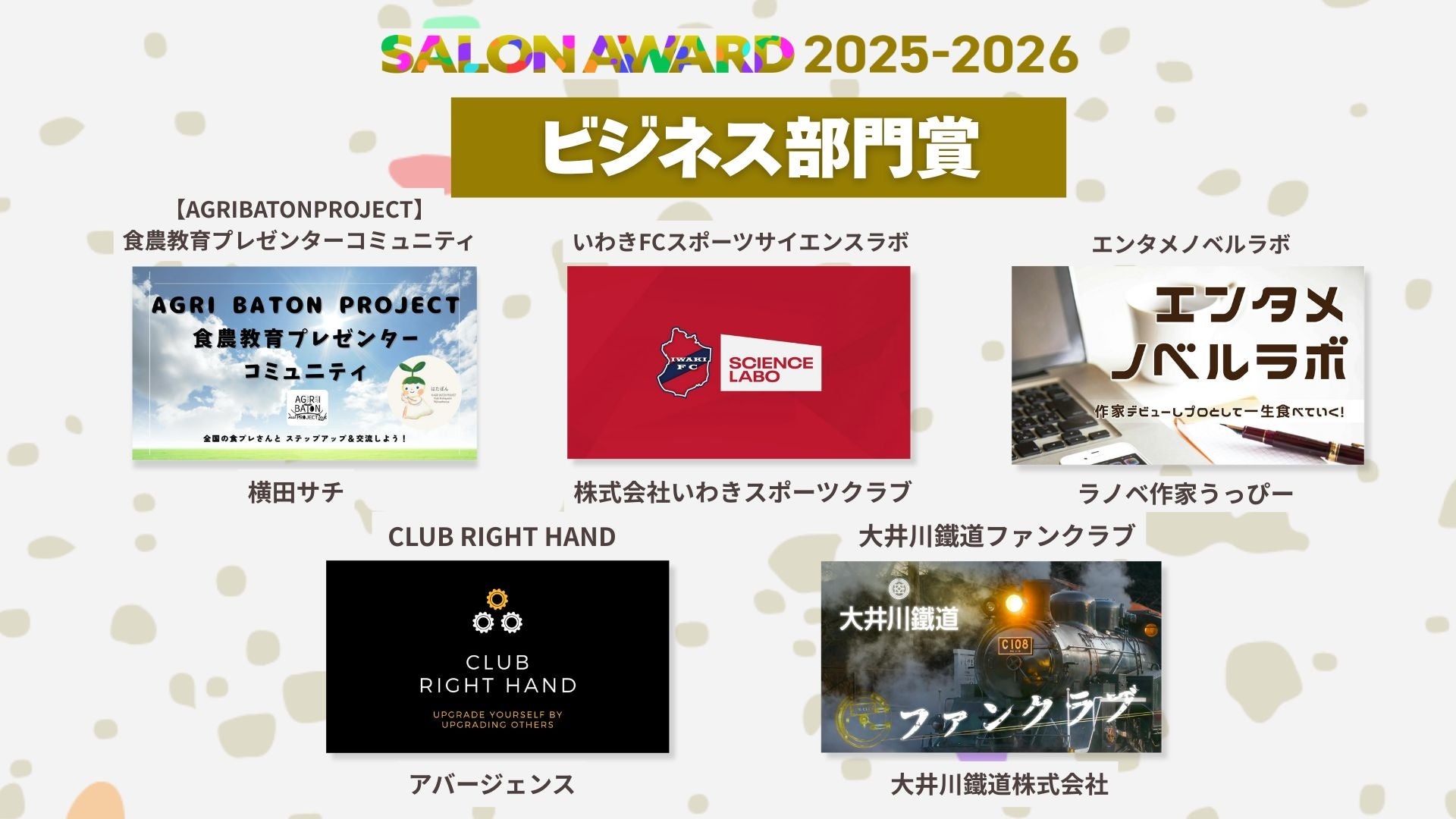 ビジネス部門賞:ビジネスの観点からコミュニティを活用し、価値を創造したサロンに贈られる賞